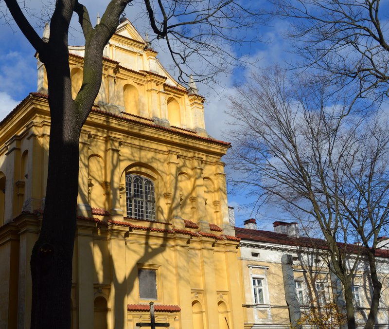 Budowę klasztoru karmelitanek bosych wraz z kościołem pw. Niepokalanego Poczęcia NMP rozpoczęto w 1646 r., lecz wkrótce ją przerwano. Świątynia została ukończona dopiero w 1721 r. według projektu G. Spazzia i F.A. Mayera, nadwornych architektów Elżbiety Sieniawskiej.