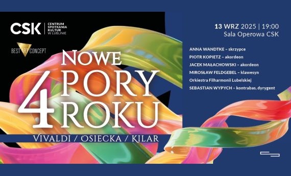 Nowatorska interpretacja „Czterech pór roku” Antonio Vivaldiego łączy elementy improwizacji w stylu minimal music, trans i world z cytatami z „Orawy” Wojciecha Kilara oraz recytacjami sonetów Vivaldiego i Agnieszki Osieckiej. Koncert w wykonaniu NEV VIBES i Orkiestry Filharmonii Lubelskiej w Centrum Spotkania Kultur zabierze publiczność w muzyczną podróż przez świat natury i żywiołów, wzbogaconą o artystyczne wizualizacje tworzone na żywo.