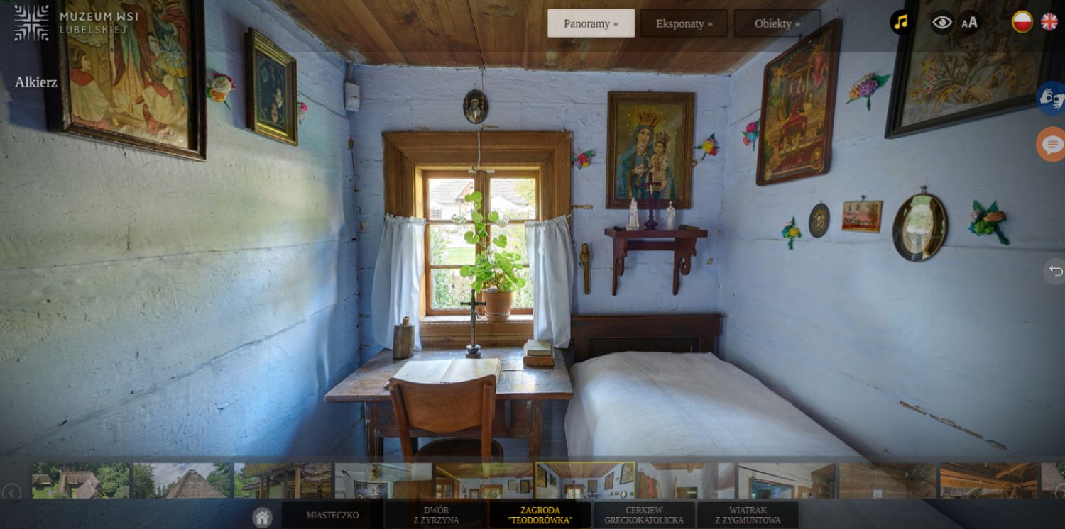 Zwiedź Muzeum Wsi Lubelskiej nie wychodząc z domu. Wirtualny spacer oferuje możliwość zobaczenia wiatraka z Zygmuntowa, zagrody z Teodorówki, domu podcieniowego z Wojsławic, dworu z Żyrzyna oraz cerkwi z Tarnoszyna - w sumie 5 obiektów, 9 ekspozycji i 24 wnętrza, w tym również zakątki niedostępne na co dzień dla zwiedzających. Bogate opisy dostępne są w wersji polskiej i angielskiej, a także w Polskim Języku Migowym.